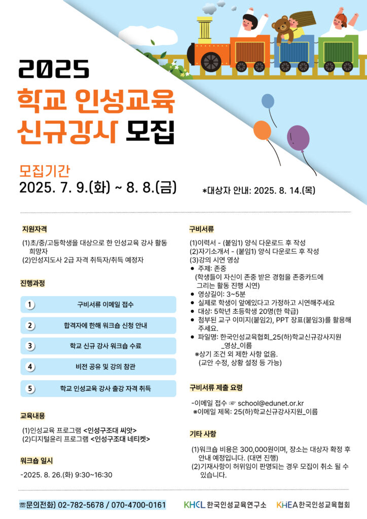 2025 학교 인성교육 신규강사 모집
