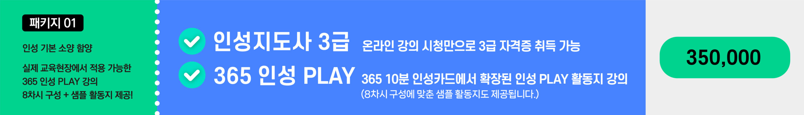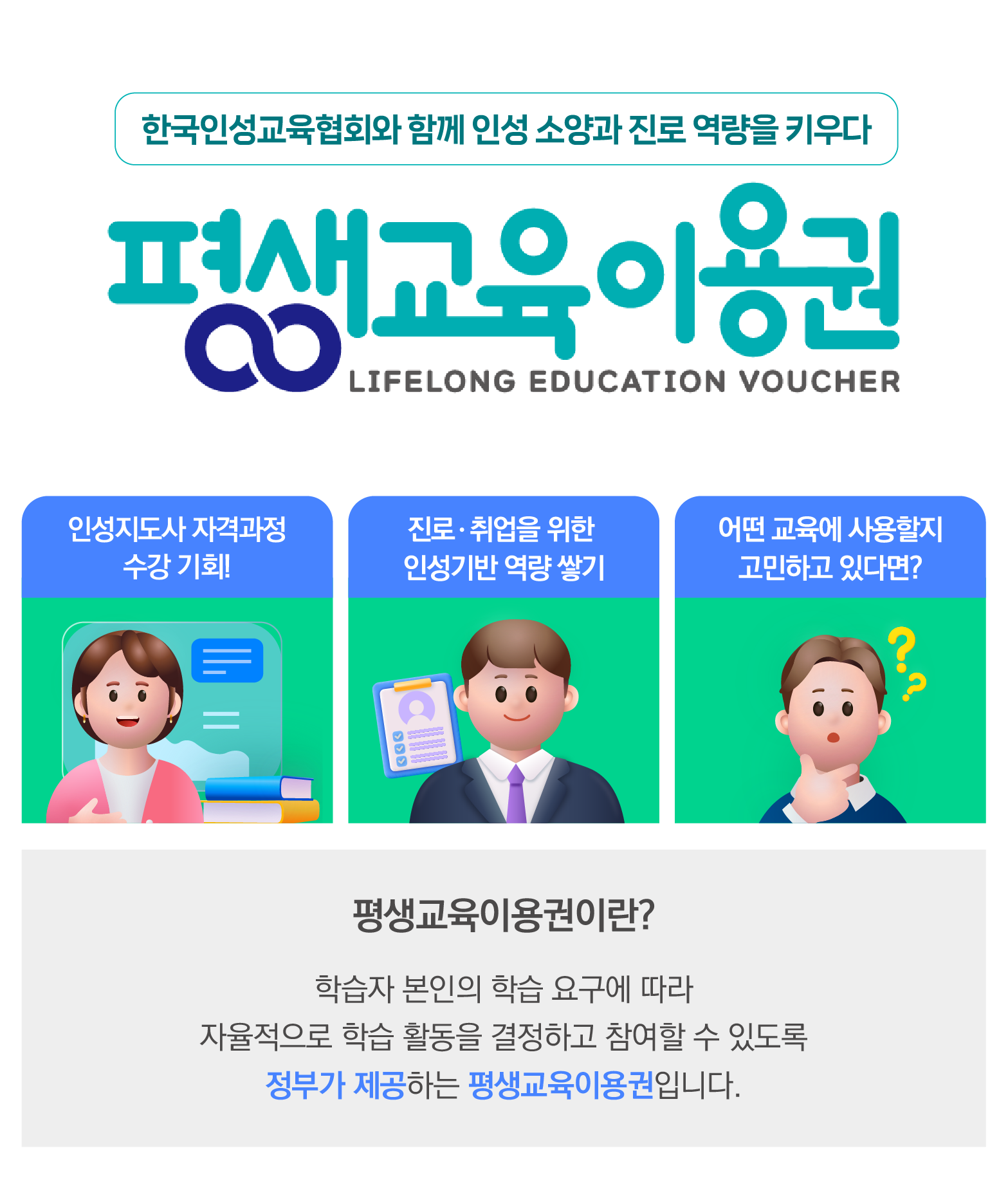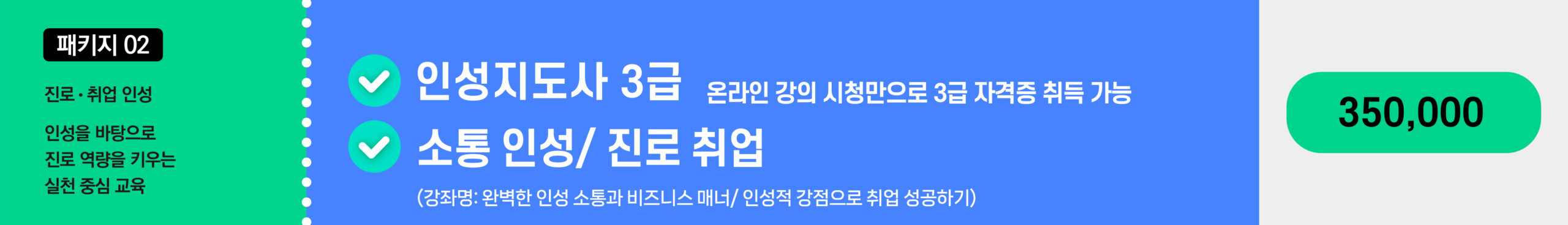 평생교육이용권 130,000원 130,000원 인성지도사 3급 110,000원 110,000원 인성적 강점으로 취업 성공하기 110,000원 110,000원 완벽한 인성 소통과 비즈니스 매너